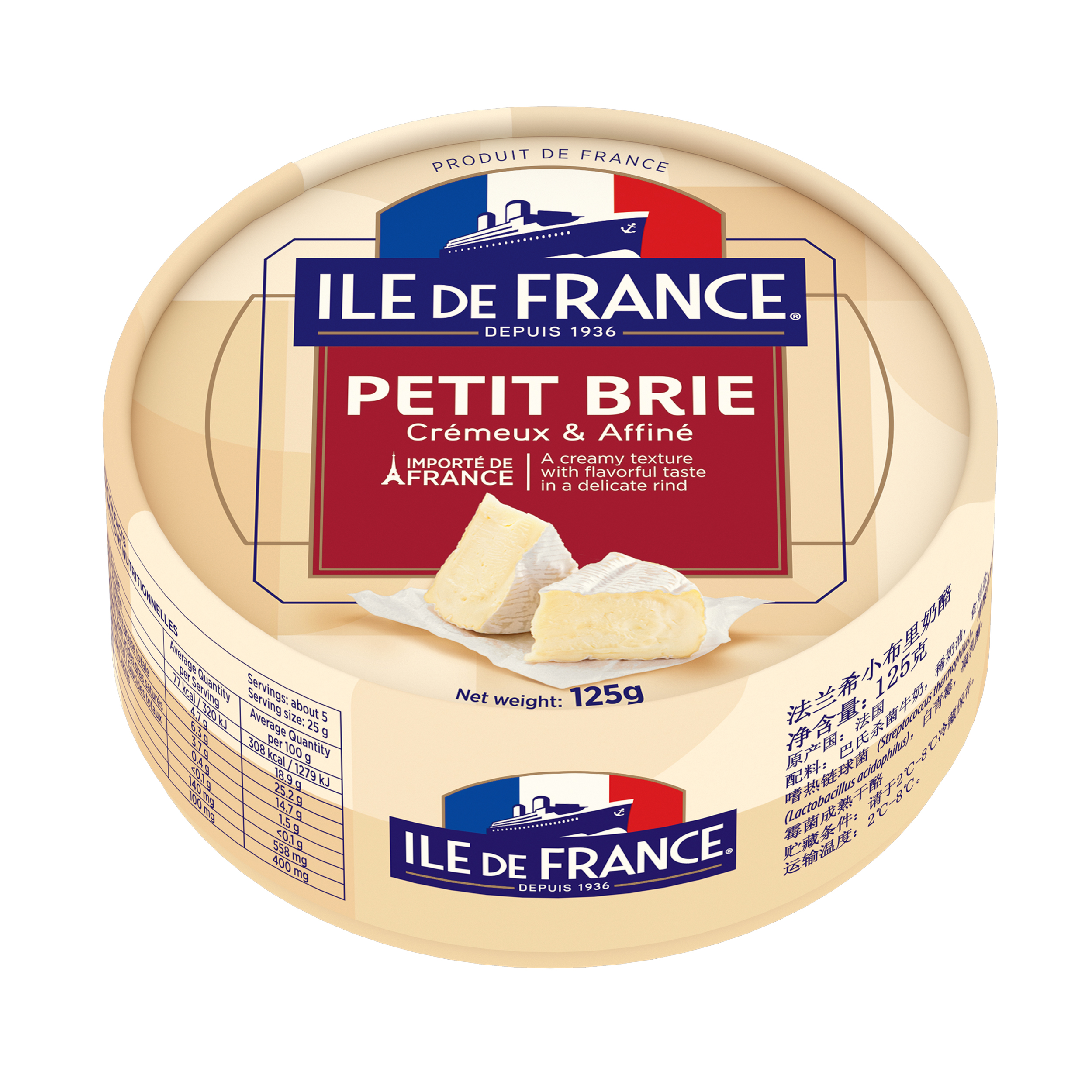 De sabor delicado con notas de avellana, color marfil y corteza aterciopelada, presenta una textura cremosa y corazón firme, gracias a su receta original a base de leche de vaca.